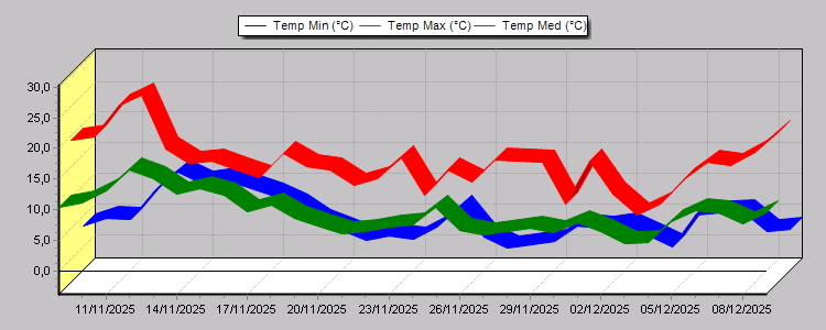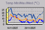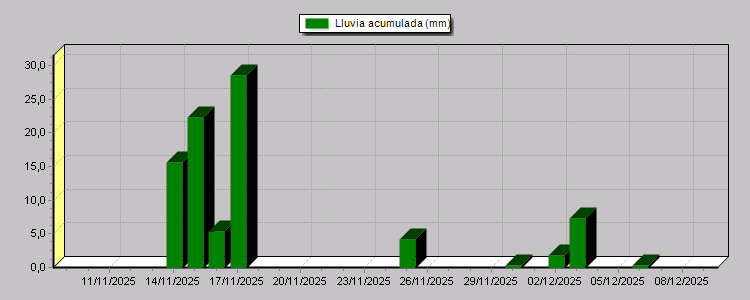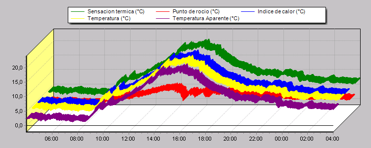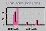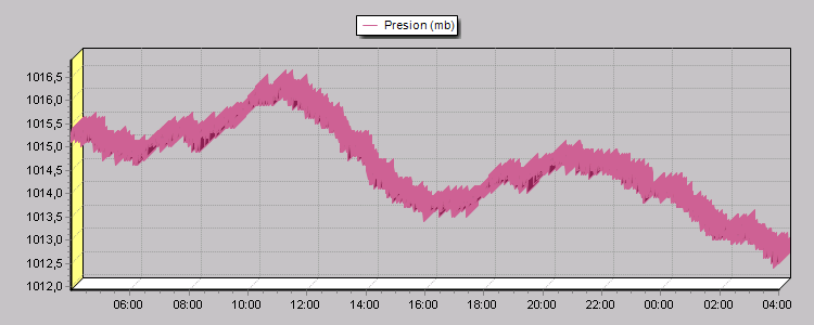 Estos graficos muestran la temperatura, presion atmosferica, precipitaciones, y velocidad del viento en las ultimas 24 horas.
